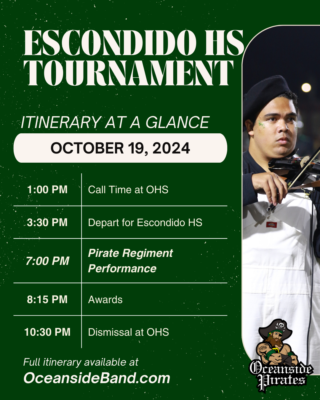 Our first tournament of the 2024 season will be on Saturday, October 19 2024 at Escondido High School. The Pirate…