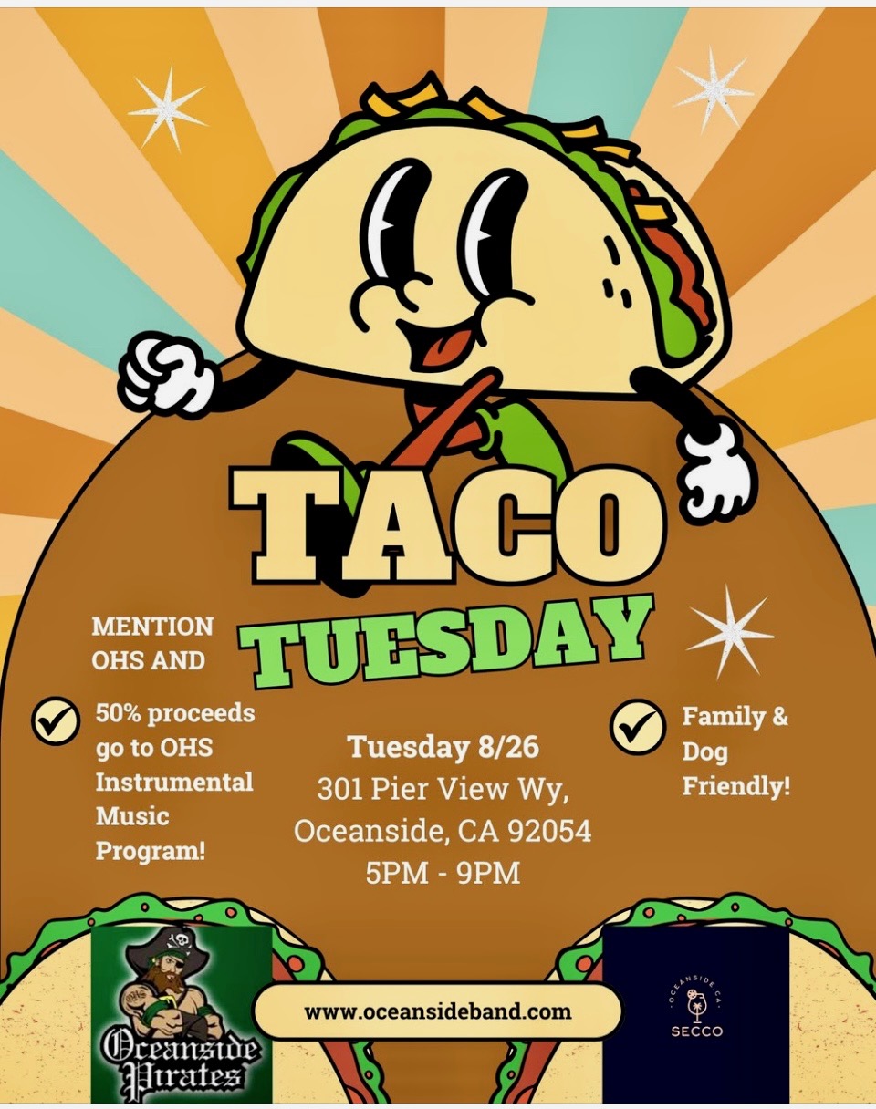 Join us at Secco Restaurant in Oceanside on Tuesday, August 26 from 5pm to 9pm for a Taco Tuesday fundraising…